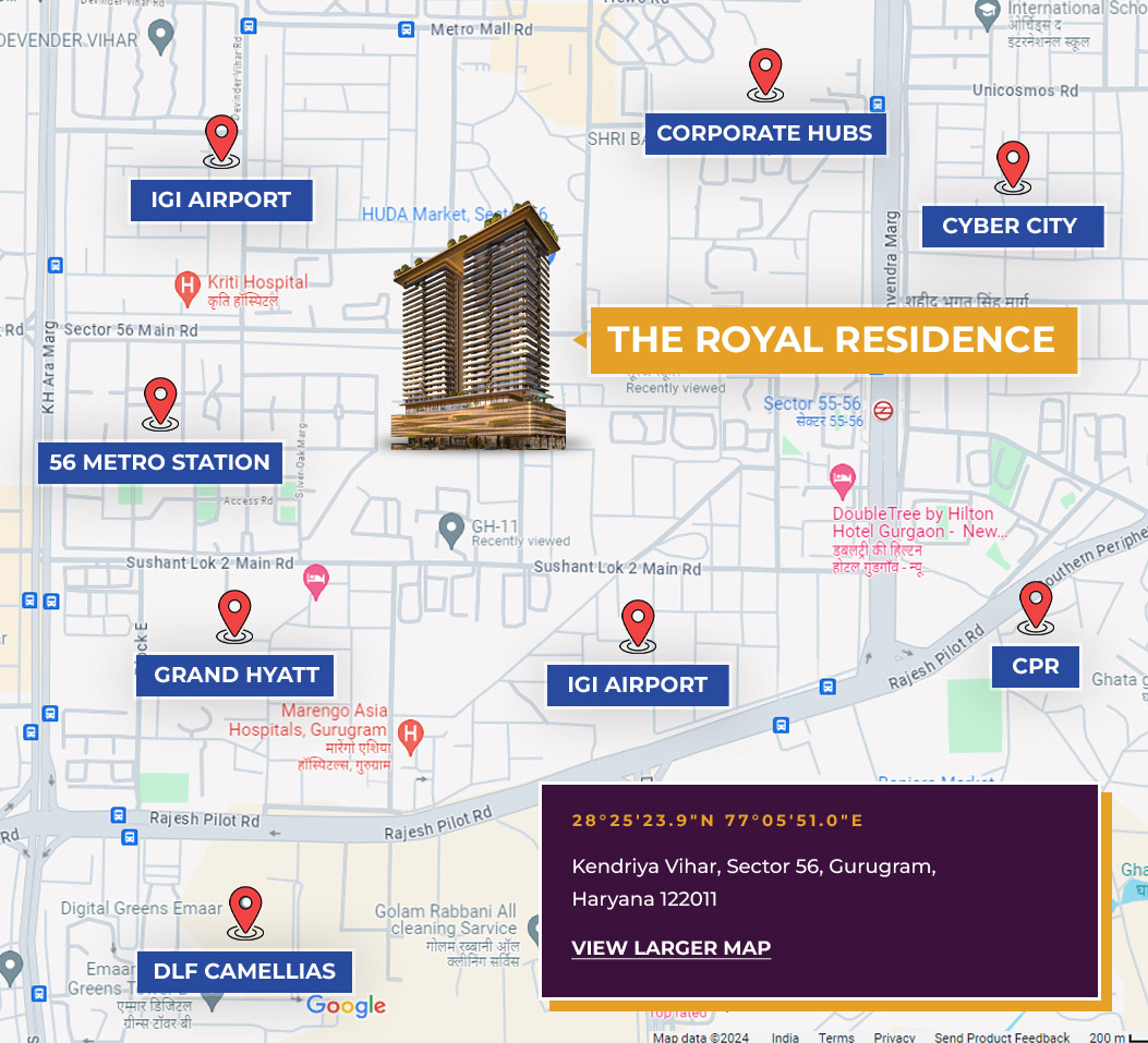 Trevoc Royal Residences Sector 56 redefines luxury living in the heart of Gurgaon's prestigious Golf Course Road. A symbol of grandeur and timeless elegance, Trevoc Royal Residences by Trevoc Group is crafted for those who cherish the finer things in life. Offering opulent 3 & 4 BHK apartments ranging from 2,800 to 3,500 sq. ft., starting at ₹6.5 Cr*, each home is a masterpiece of luxury. Enjoy sweeping views, expansive living rooms, party decks with large balconies, and beautifully landscaped green spaces that create an oasis of serenity.